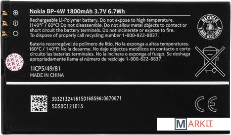 Markit » Аккумуляторы для телефонов » Аккумулятор для телефона Копия Nokia BP-4W