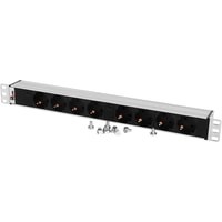Блок силовых розеток имеет восемь портов стандарта Schuko, выполнен в анодированном алюминиевом корпусе. Розетки расположены горизонтально, для удобного подсоединения коленчатых штекеров. На лицевой части блока установлен индикатор. Вход кабеля питания - клемная колодка. Кабель питания в комплект поставки не входит. Совместим со всеми линейками 19” монтажного оборудования. Поставляется в индивидуальной упаковке с комплектом крепежа.