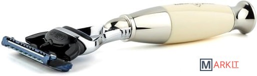 Бритвенный станок Diffusion английского бренда Edwin Jagger с системой Gillette Fusion. Ручка выполнена из акриловой смолы цвета слоновой кости. Все металлические элементы бритвы сделаны из высококачественной нержавеющей стали и покрыты никелем для придания особого блеска и дополнительной стойкости к коррозии. Бритва поставляется в фирменной подарочной упаковке.