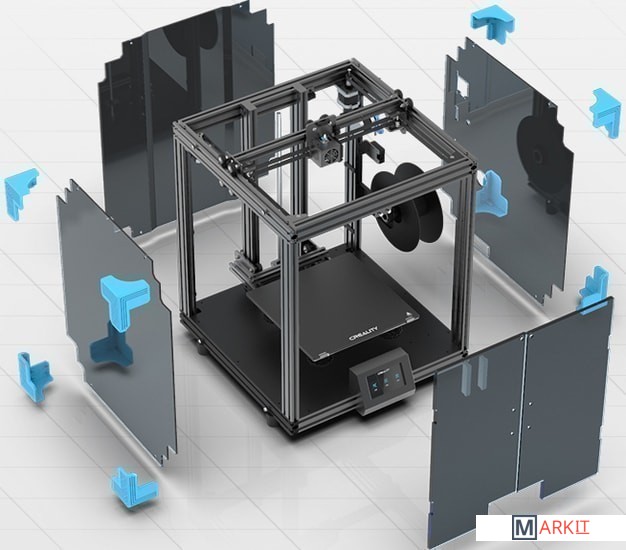 Низкий уровень шумов достигается благодаря использованию тихих драйверов TMC2208, обеспечивающих плавное позиционирование с шумностью ниже 50 дБ.Столик из карборундового стекла отличается высокой термостойкостью и теплопроводностью. Благодаря добавлению карбида кремния достигается более быстрое прогревание и улучшаются адгезионные свойства с вытекающим снижением риска отрыва модели от стола.