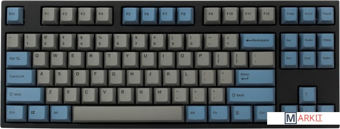 Тип: линейныйСила нажатия: 45 грамм (легкие)Длина пути: 4 мм (2 мм до срабатывания)Данная модель выполнена в сочетании пурпурно-фиолетового, серого и чёрного цветов, расцветка обязательно понравится любителям сочных, но приглушённых красок. Клавиатура собрана добротно и монолитно, а сочетание высококачественных double-shot PBT клавиш с переключателями Cherry MX и звукопоглощающей подложкой позволяет сделать печать на клавиатуре максимально тихой (насколько это возможно для механики). Mini-USB порт спрятан в центре под корпусом, а на самой клавиатуре имеются центральная и две боковые канавки под кабель.Клавиатура поддерживает сочетание клавиш для регулировки громкости и управления музыкой, также имеется возможность переключения между 6KRO и NKRO.DIP-переключатели на задней панелиДают возможность поменять местами функции кнопок Ctrl и Caps Lock, Windows и Alt, Windows и Fn или отключить Windows.Звукопоглощающая подложкаПоглощает звуки при нажатии, делая процесс печати более тихим по сравнению с обычными механическими клавиатурами.Низкопрофильные клавиши Step-Sculpture2Данные клавиши заметно ниже и имеют оптимальный угол наклона, из-за чего, по отзывам, печатать приятнее и комфортнее, чем на более высоких клавишах.Клавиатура совместима с Mac OSFN-слой работает (кроме клавиш F6, F8, F9), а поменять местами клавиши-модификаторы можно в системных настройках. Проверено с MAC OS 10.13Функция Full N-key Rollover по USB (NKRO)Позволяет нажимать одновременно неограниченное количество клавиш. Для печати идеально подойдет как 6KRO, так и NKRO, независимо от вашей скорости. Для игр NKRO будет плюсом и неважно, нажимаете ли вы больше 6 кнопок или нет, поскольку, играя в любую игру, вы можете случайно нажать пару лишних клавиш и из-за этого клавиатура имеет шанс не среагировать на нажатие, которое вы хотели совершить изначально. Имеется возможность переключения между NKRO и 6KRO через FN сочетания.