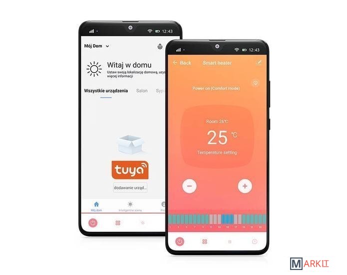 Тип: настенный (монтажные аксессуары в комплекте)/ переносной (на ножках).Передняя панель из закаленного стекла.Функция: еженедельный программист.Режим антифриза.Функция открытого окна.Диапазон регулировки температуры: 12 ° С - 45 ° СДлина шнура питания: 1,5 мВ дополнение к базовому управлению через панель обогревателем можно управлять через Wi-Fi. Спящий режим - отключение подсветки ЖК-панели.Восстановление сохраненных программ при пропадании питания (опция доступна только из приложения TuyaSmart).