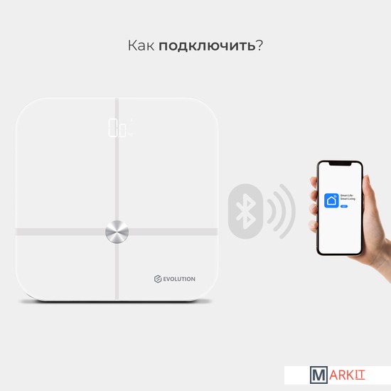 Умные весы EVOLUTION измеряют вес и проводят диагностику Вашего тела. Весы синхронизируются со смартфоном через Bluetooth и автоматически передают данные в приложение "Smart Life", которое совместимо IOS 8.0 и новее, Android 5.0 и новее.Приложение "Smart Life" на русском языке и интуитивно понятно. Для корректной оценки состояния тела в приложении нужно ввести возраст, пол и рост. Все данные носят справочный характер.Включаются и отключаются автоматически. Есть индикаторы низкого заряда и перегрузки. Прорезиненные ножки. Работают от батареек: 4 шт типа ААА, которые не входят в комплект.