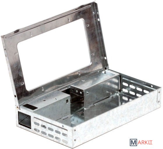Живоловка для мышей – это ловушка, предназначенная для отлова мышей живьем. Используется для контроля грызунов в жилых, производственных и складских помещениях в комплексе с другими способами дератизации или в случаях, когда использование ядохимикатов нецелесообразно. В отличие от использования отравленных приманок и мышеловок ударного типа, полностью исключается риск отравления и получения механической травмы человеком и домашними животными.Компактное приспособление (размеры: 260x160x50 мм) изготовлено из высококачественной оцинкованной стали, что позволяет устанавливать его даже в сырых помещениях и под открытым небом. Прочное прозрачное окошко в крышке живоловки позволяет без затруднений отслеживать ситуацию внутри изделия.